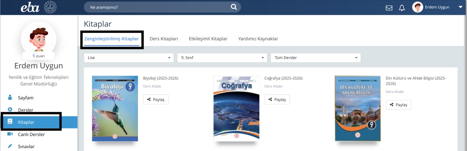 Hocam EBA’daki pdflerden bahsediyorsanız, ET’lere uygun kitaplar EBA’da Kitaplar/Zenginleştirilmiş Kitaplar altında yer alıyor. Onları kullanır mısınız?