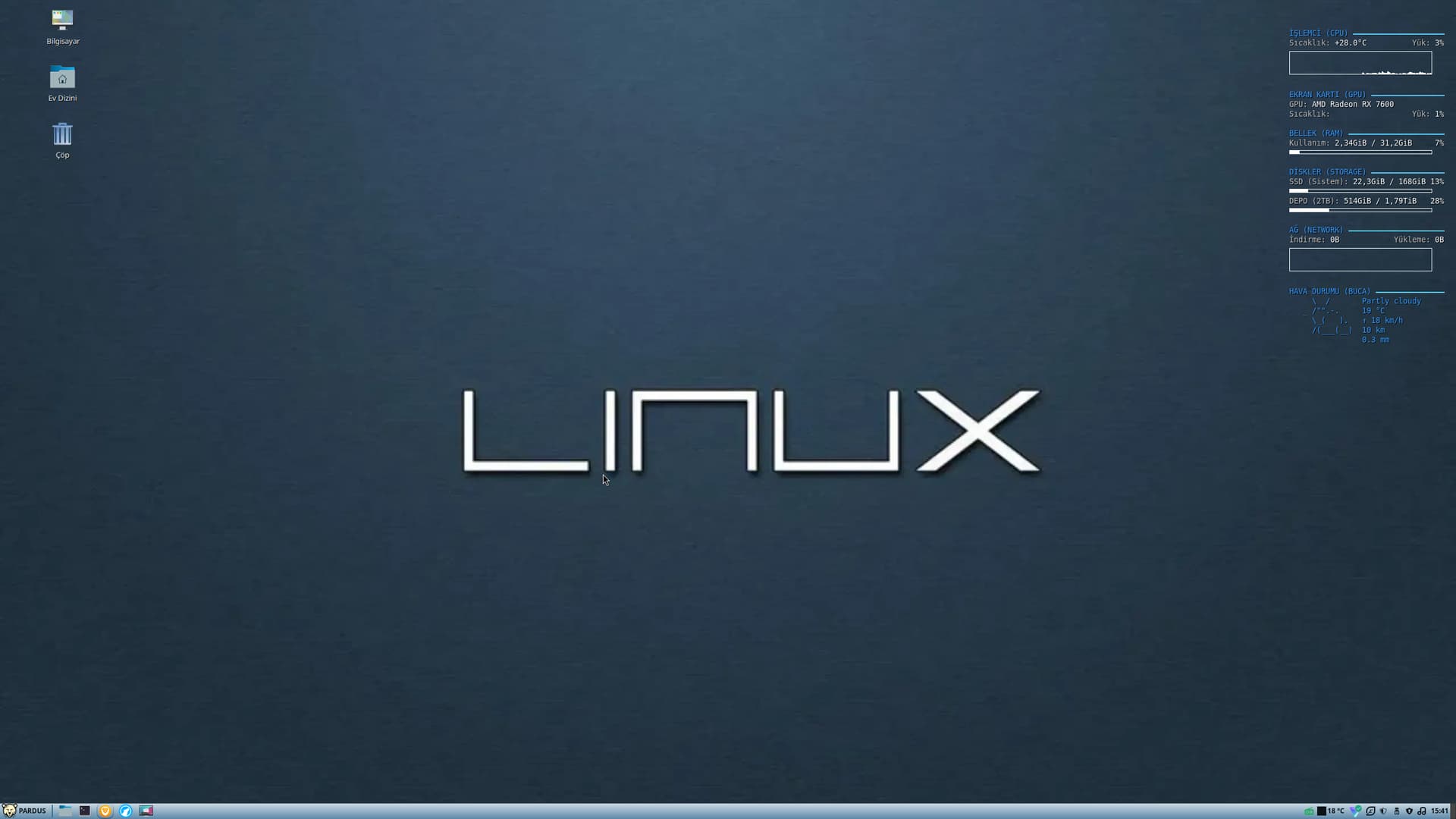 512 GB SSD’mi biri mint biri de pardus olmak üzere ikiye böldüm ve aynı temayı degiştirmeden kullandım. Fakat gördüğüm kadarıyla xfce üzerinde de hiç fena durmadı…