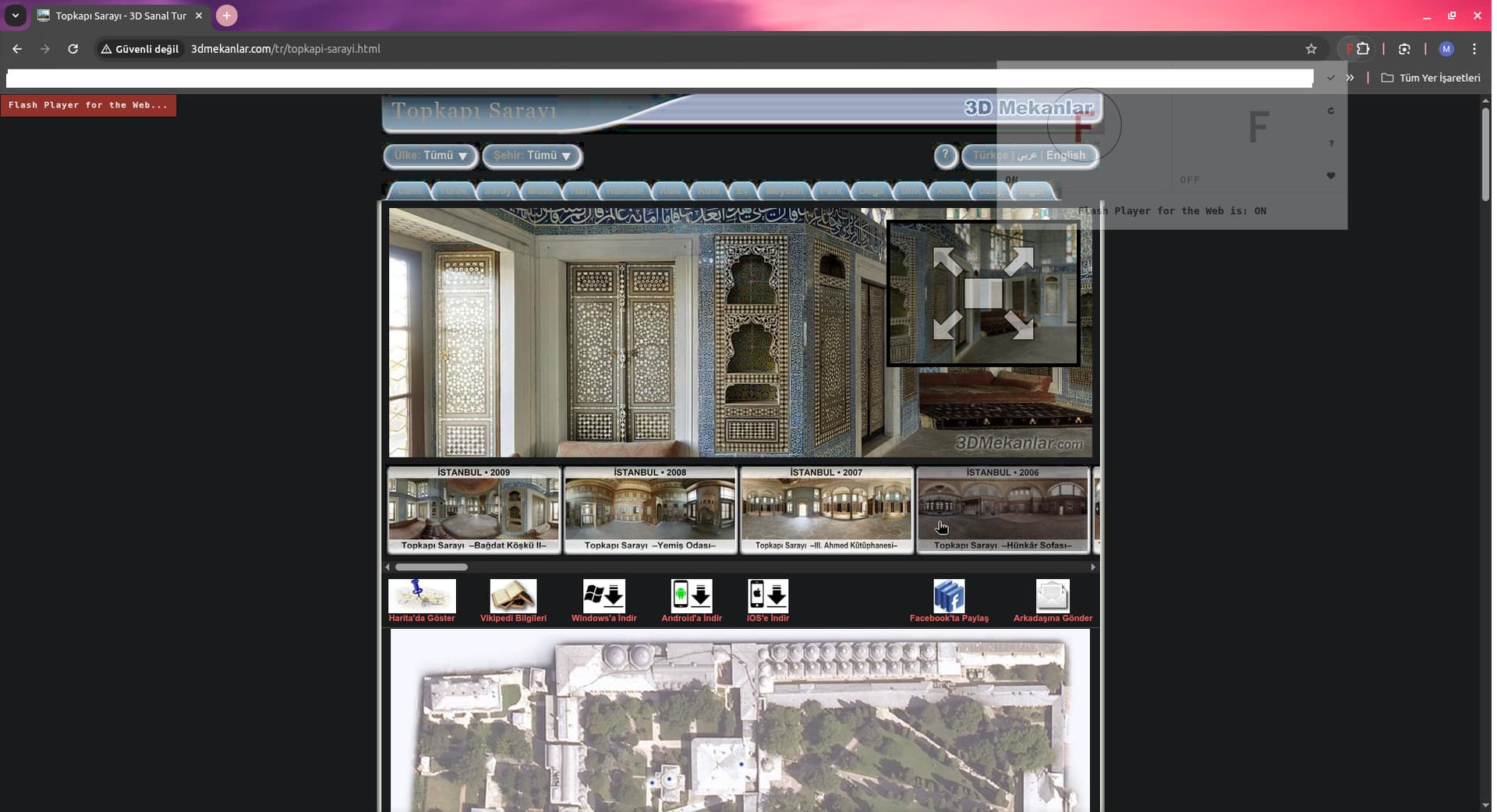siteyi açtıktan sonra flash player for the web eklentisinde on kısmına tıklayınca sağa sola çevrilebiliyor .