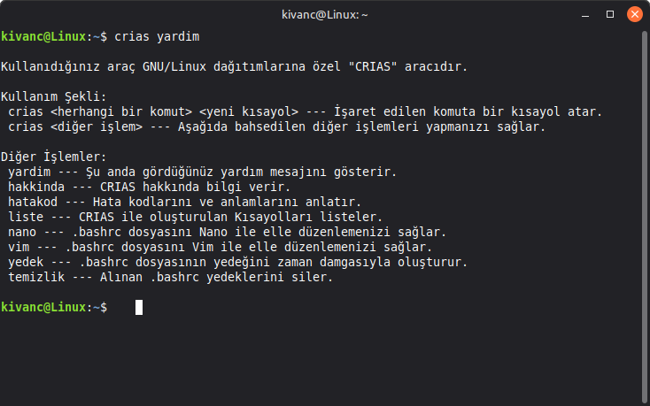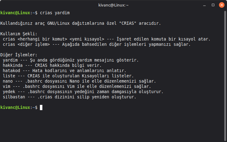 Çok kısa bir tanımla CRIAS, bash kullanan GNU/Linux sistemlerinde .bashrc dosyasına hızlıca Alias (Kısayol) satırları ekleyen bir Python betiğidir.