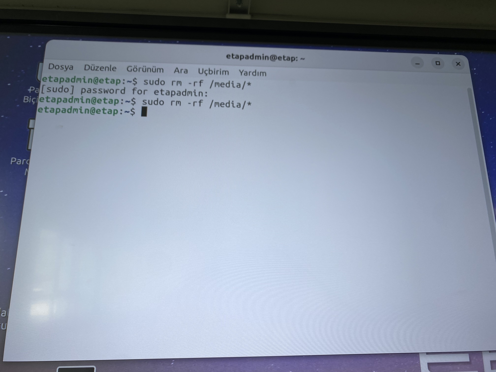 Aynı şekilde hiç bir şey takılı değilken sudo rm -rf /mnt/* komutunu çalıştırıp deneyelim.