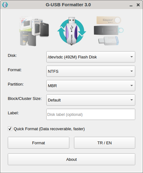 G-USB-Formatter 3.0, gelişmiş ve iyi tasarlanmış bir USB hafıza birimi biçimlendiricisidir. Pardus USB Biçimlendiricisi’nin benzeridir.