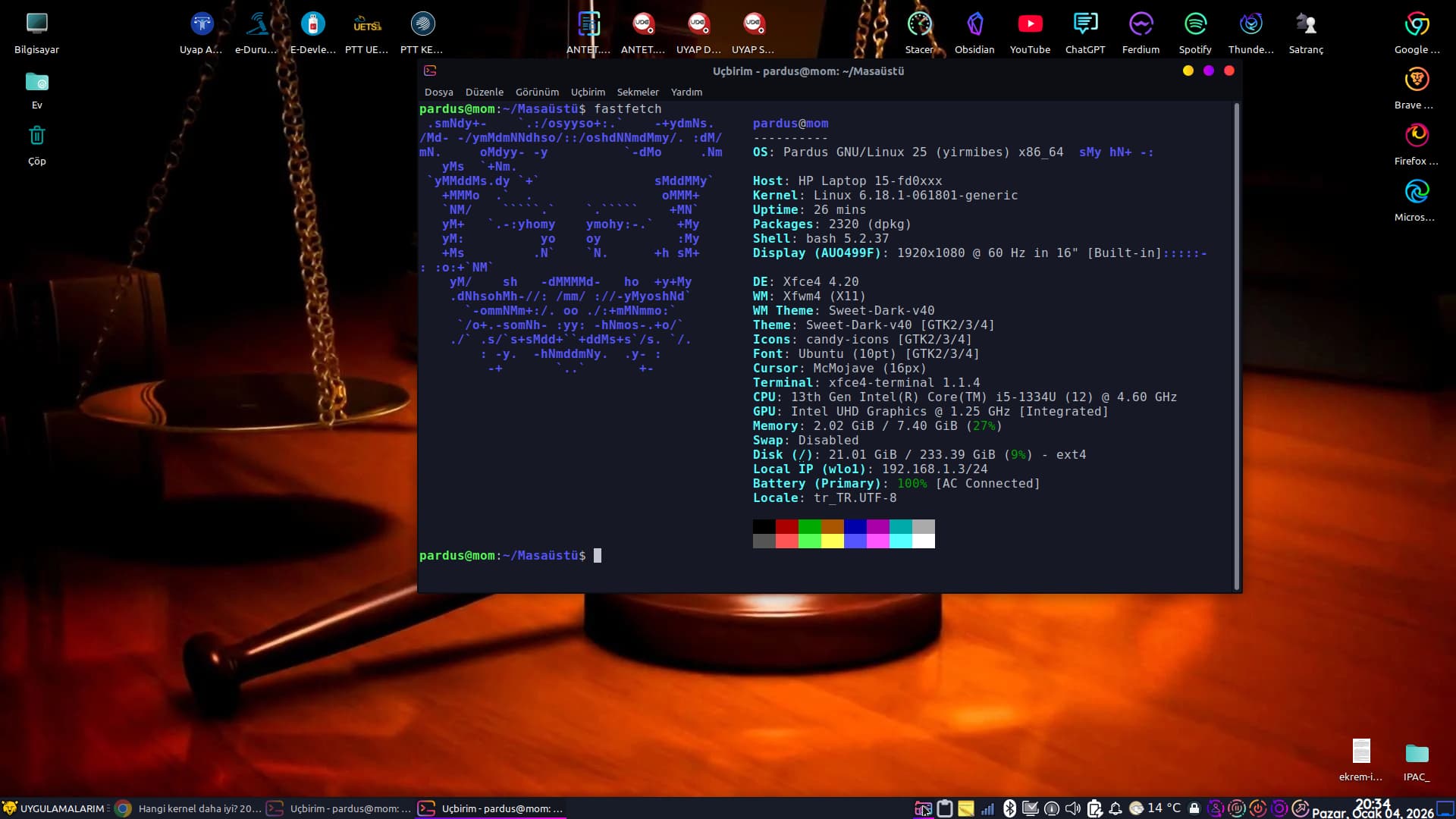 Hocam ben şu an Pardus 25 yüklü laptopda Xanmod kernel 6.18.3 kullanıyorum. Gayet memnunum. Nvidia ekran kartım olmadığı için hiçbir problem yok. İşlemci apu zaten.
