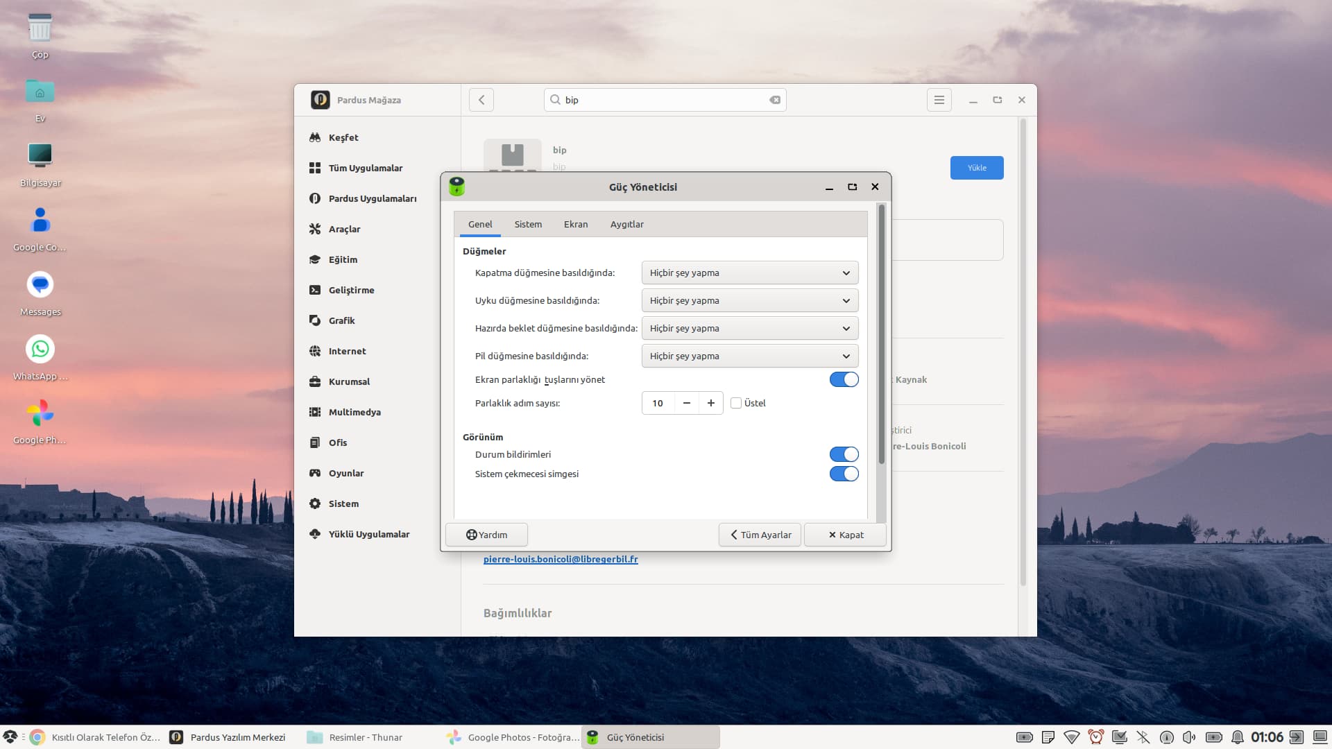 9- Bilgisayarınızı asla kapanmayacak şekilde kullanınız ki telefondaki bağlantı kesilse de bilgisayardaki tarayıcı bağlantısı kesilmesin. Bilgisayarınızın şarj cihazınınızı hep yanınızda taşıyın. Görüldüğü gibi telefon olmasa da bilgisayar, özellikle de Pardus’lu bilgisayar bize yeter.