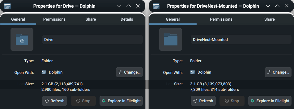 Halen Insync ile senkronize edilen benim yerel “Drive” klasörü ile “DriveNest-Mounted” klasörü arasında gerek dosya ve klasör sayısı gerekse boyut farkının bu kadar fazla olması (tüm içindekilerin listesini karşılaştırmalı)