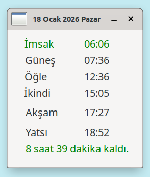 Vakitleri getir düğmesine tıkladıktan sonra uygulamayı tekrar çalıştırmak gerekiyor.