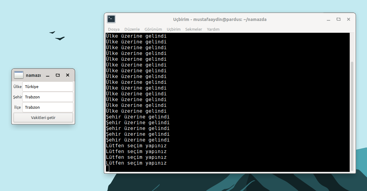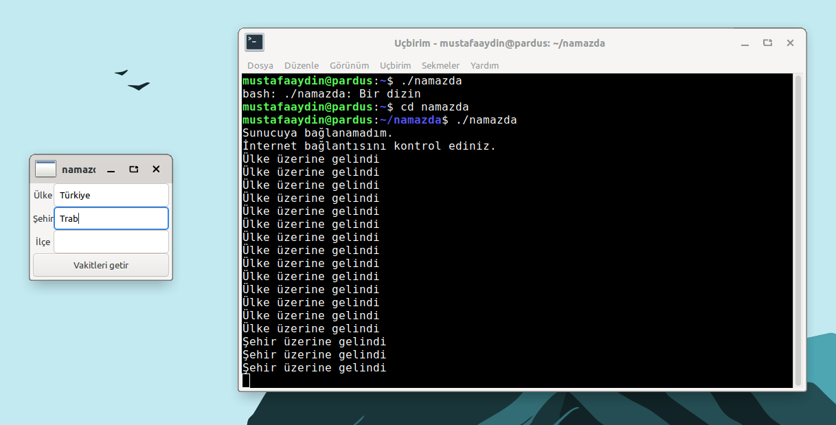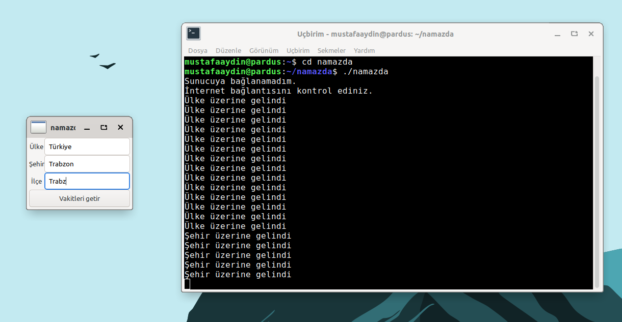 Böylece terminalden namazda yazarak uygulamayı çalıştırabilirsiniz.