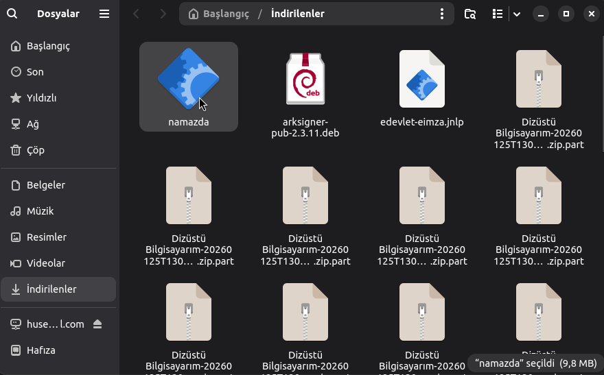 İndirilenler dizinine geldim.