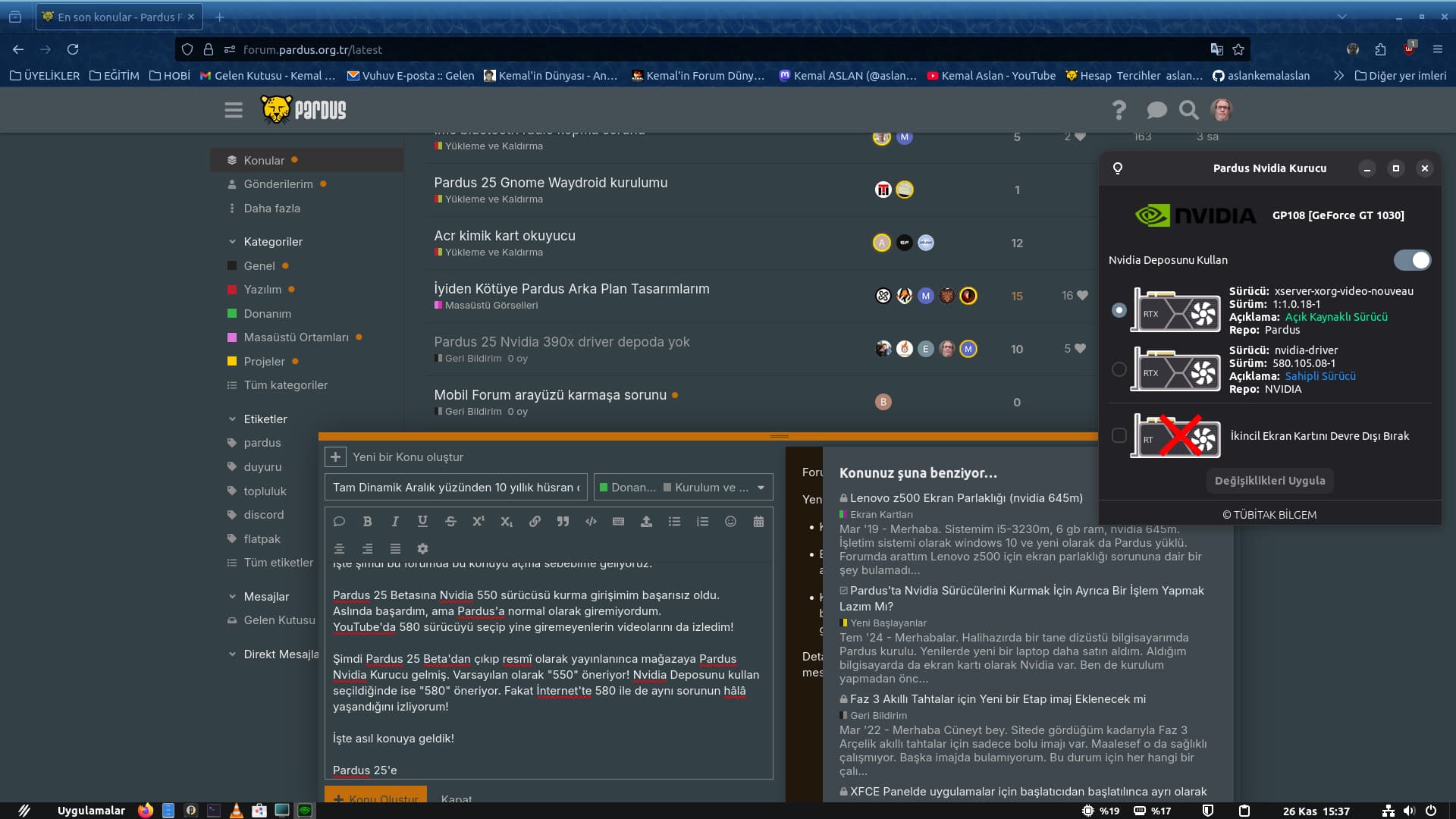 Pardus 25 Betasına Nvidia 550 sürücüsü kurma girişimim başarısız oldu.