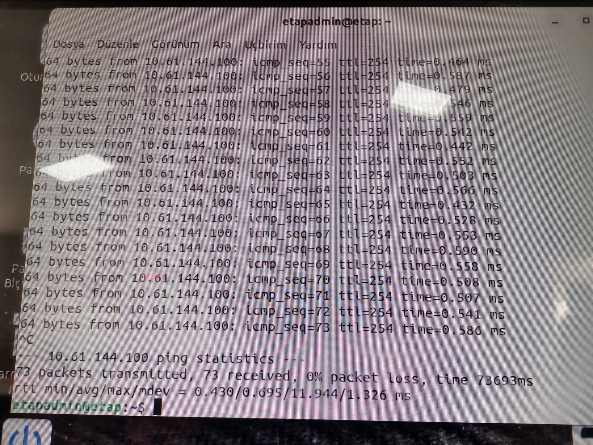 Hocam ping atınca şu şekilde bir ekran görüntüsü geldi,