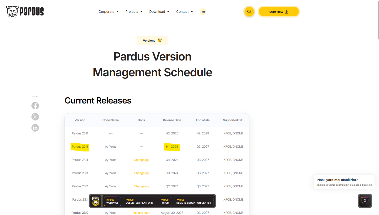 Debian 13 zaten yayınlandı ve Pardus’un değişiklik günlüğüne Version Management - Pardus - TÜBİTAK](Version Management) göre Pardus 23.5 güncellemesi 2025’in ilk yarısında (H1 2025) gelmesi planlanmıştı.