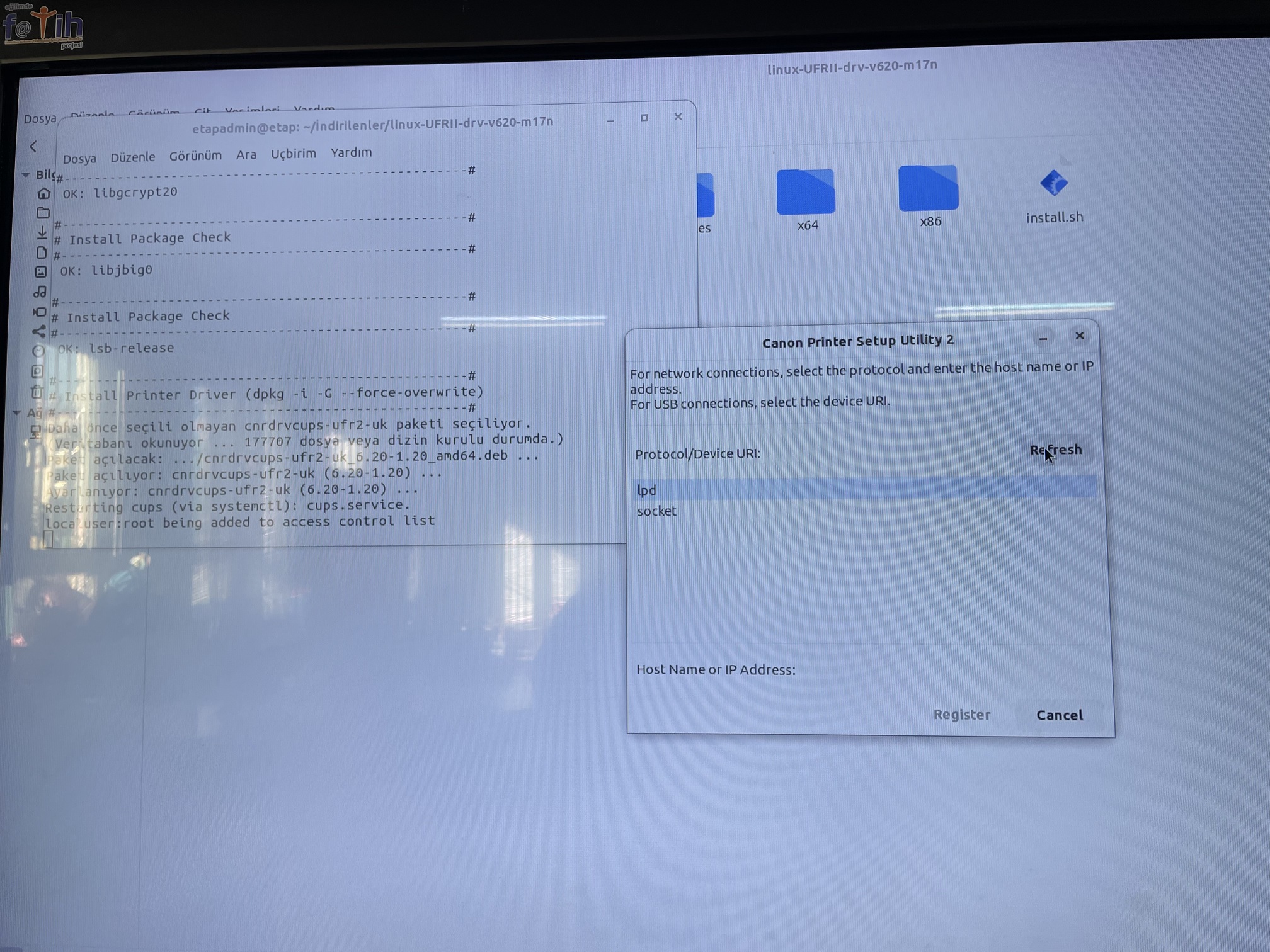 Pardus 23 yüklü faz1 vestel akıllı tahtaya canon i sensys mf226dn yazıcı yükleyemiyorum
