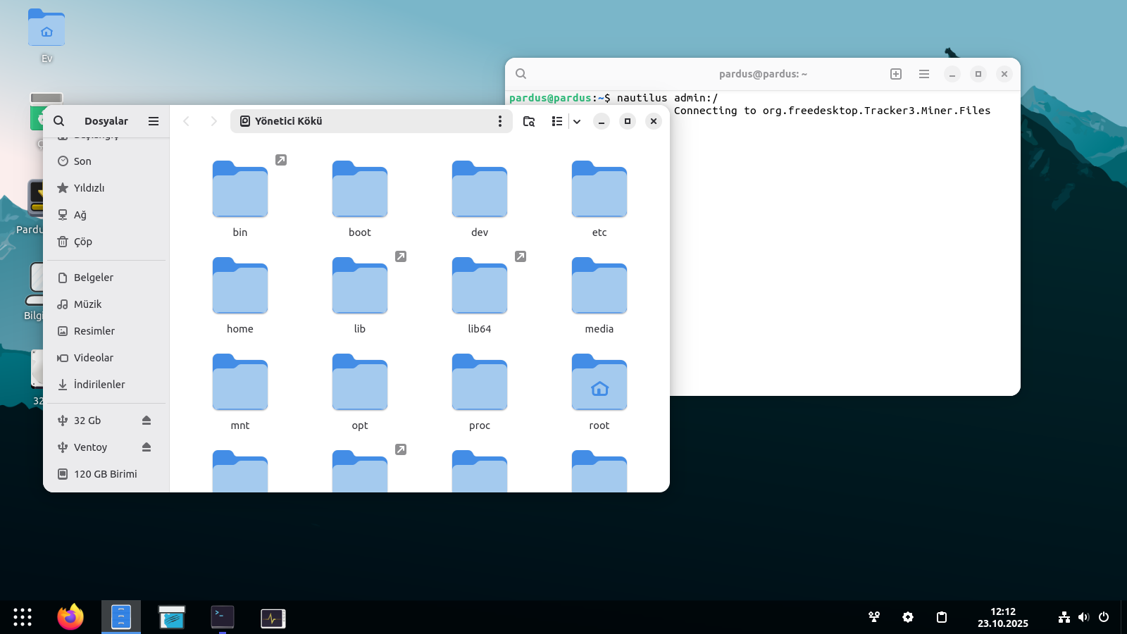 Dosya Yöneticisi sudo nautilus ile açıldığında böyle açılıyor .