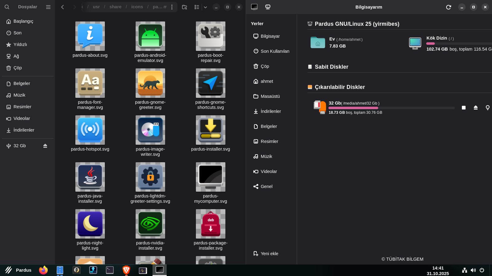 öncelikle merhaba Pardus 25 Gnome sürümü hakkında deneyimlerimi ve bir kaç eksiği söylemek istiyorum performans açısından hiçbir kayıp yaşamadan kullanabiliyorum sistemi o yandan hiçbir problemim yok onun dışında Gnome 48 kullanılması güncellik açısından daha iyi olmuş en azından yeni gelen kullanıcılar artık (49 varken neden hala 43 kullanılıyor) demeyeceklerdir bunların dışında tema ve ikon paketleride çok hoş görünüyor fakat dışarıdan farklı bir ikon paketi yüklendiğinde sistem ikonları 23 sürümündeki ikon şekline geri dönüyor örnek olması için görsel paylaşacağım bunun dışında bir sorunla karşılaşmadım iyi çalışmalar dilerim