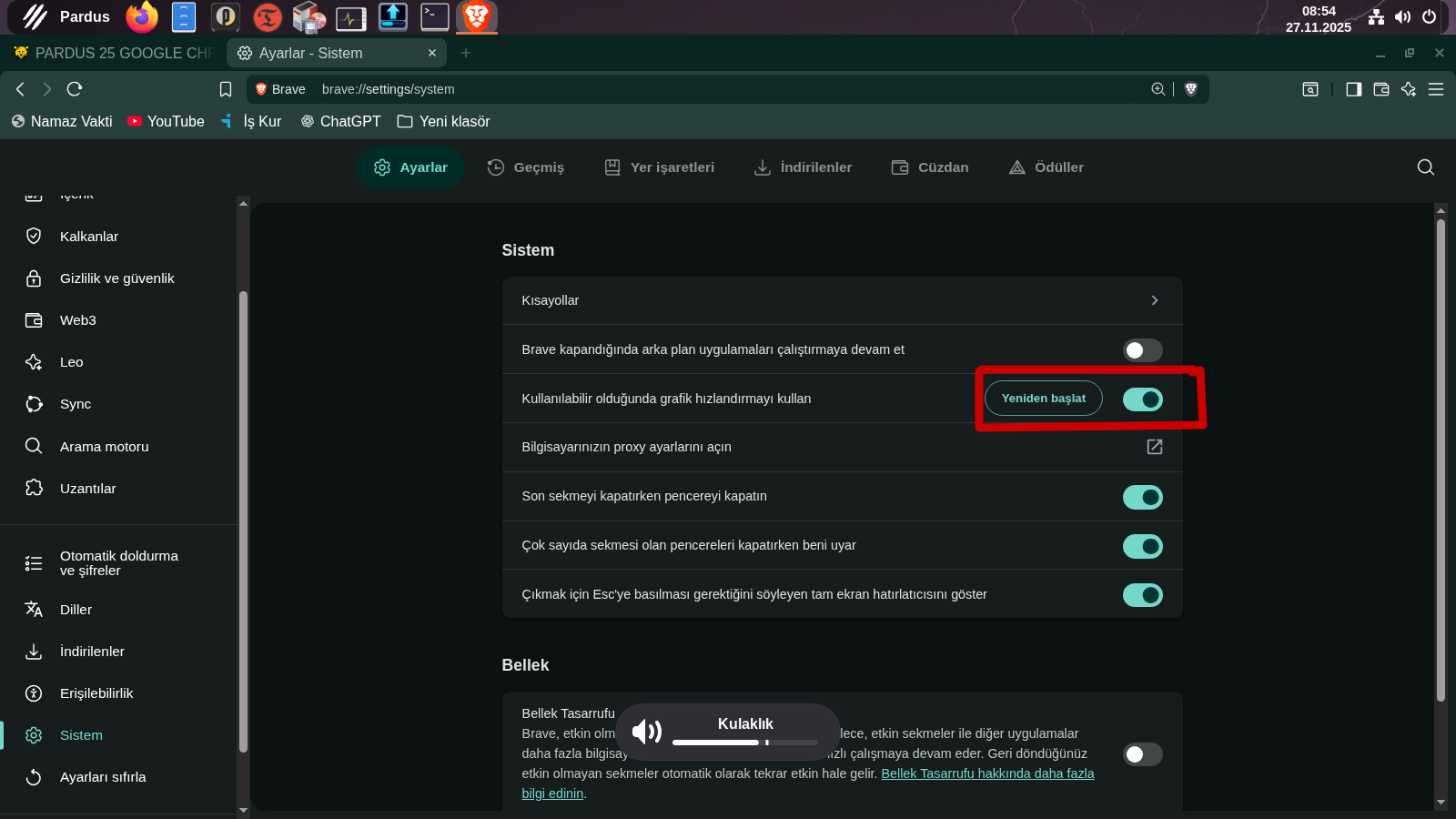 Benim tarayıcıda bu şekilde . Bu ayar açık oldumu . GNOME Masaüstü ortamında bilgisayar kilitleniyor . Bu ayarı kapatman lazım . Kendi tarayıcında ilgili yeri bulup . Bu Brave