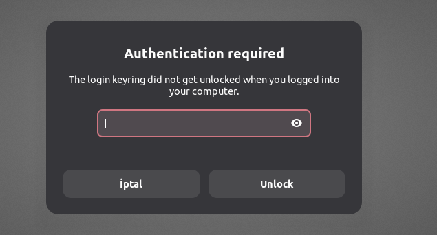 Oturum açtıktan sonra gelen ve her açılışta şifreyi tekrar yazmamı gerektiren o pencere.