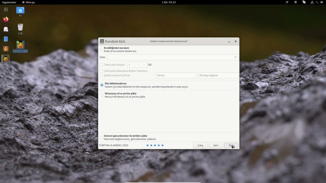 Hocam bilgisayara taktığınız usb belleğe indirdiğiniz Pardus sürümünün yükleme isosunu yazdırmanız gerekiyor. Bu sırada usb çiindeki veriler siliri yükleme için usb hazırlanır. Usb işlemi bittikten sonra bilgisayarın boot menüsünden usb belleğinizi seçip yükleme yapmanız gerekmekte. Yükleme yaparken eğer windows yanına kuracaksanız yanlışıklı tüm diski seçip silmemeniz gerekmekte. Onun yerine diskin bi kısmını bölüp pardus için ayırmanız gerekiyor. Sonrasında yükleme sırasında diski seçerken elle seçim yapıp disk seçilmesi gerekmekte.