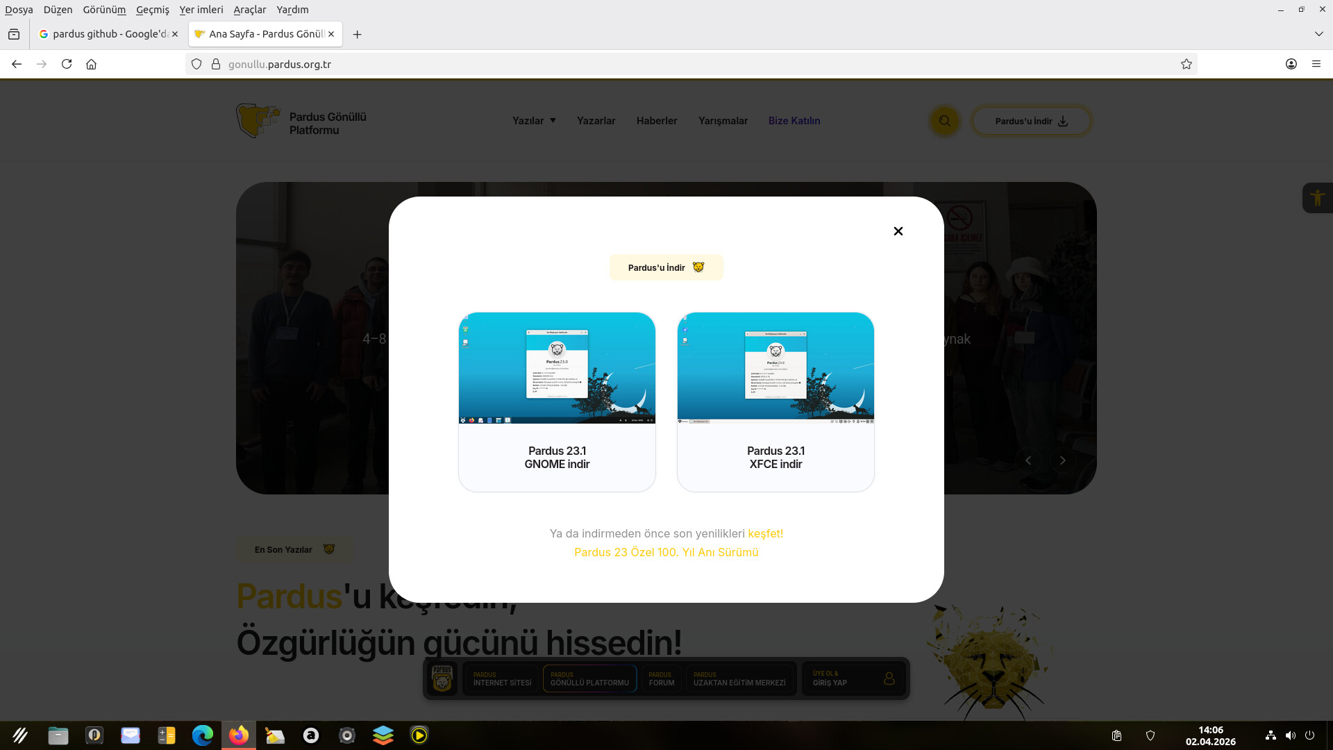 Pardus gönüllü platformu üzerinde bulunan indir menüsünün bağlantısının pardus internet sayfası indir menüsüne yönlendirilmesi daha mantıklı olacaktır. Güncellenmesi unutuluyor.