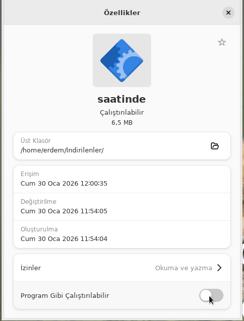 chmod +x saatinde