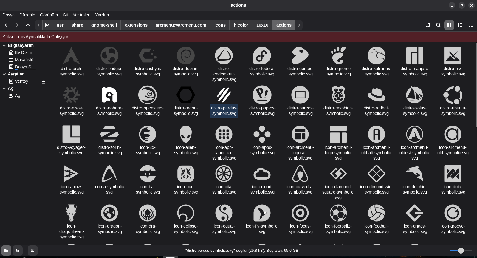Aslında Pardus Görseller adresini de şuradan https://pardus.org.tr/gorseller/ kontrol ettim. Orada da ne yazık ki yoktu. Gerek standart şekliyle simge ve başlığın birlikte olduğu ikonlar gerekse de sadece simgenin olduğu şekliyle oraya da eklenebilmesi mümkün müdür (Aydınlık + Karanlık)? Hem bu sayade herkesin faydalanmasına da olanak sağlanmış olur diye düşünüyorum.