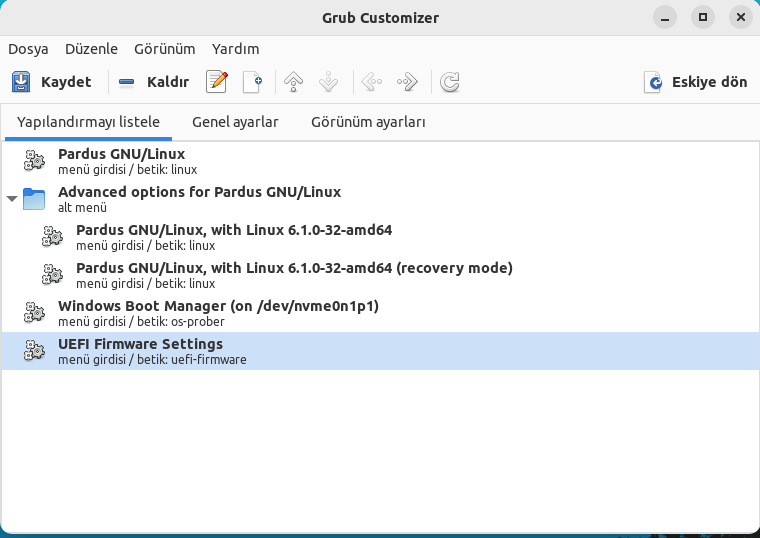 Grub Custamizer Grub’u kaldıramıyor maalesef, sadece düzenleme yapabiliyor. Bunu kullanarak Grub’u kapatabilirsiniz. Fakat şöyle bir durum var, eğer ilk iki yöntem işe yaramadıysa grub Windows’un efi diskinde demektir. Bu durumda Grub’u silmek için efi bölümünün içinden silmek gerekiyor, o da gayet uğraştırıcı olabilir sizin için. O yüzden bence olduğu gibi devam edin.