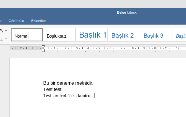 Bu kez, shift kullanmadan direkt enter ile deneyerek yazı yazdım. Yazıların arasında bilerek fazladan bir boşluk bıraktım. Kaydedip tekrar açtığımda aradaki boşlukları yutmuş olarak açıldı.