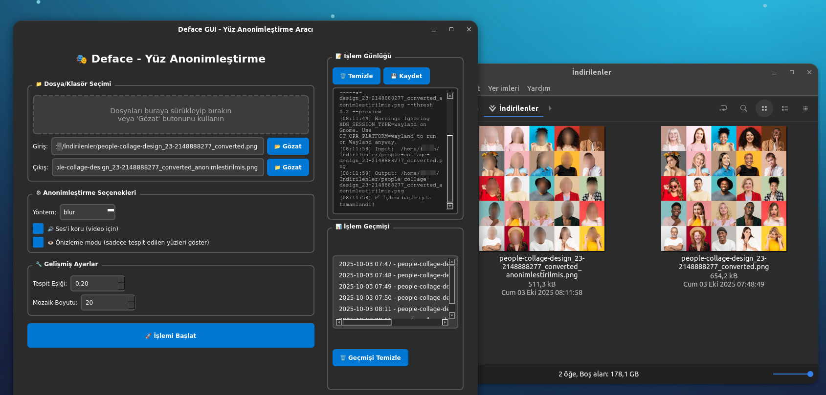 Merhabalar, size de video ve resimlerdeki yüzleri anonimleştirecek pratik bir araç lazım ise açık kaynak ve ücretsiz Deface göreve hazır.
