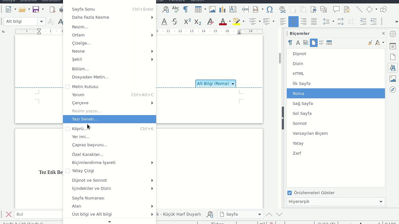 Libre Ofis 6.1’de bir teze sayfa numarası verme işim oldu. Bir süre araştırdıktan sonra aşağıda anlattığım yolla başardım. Sizinle de paylaşmak istedim.