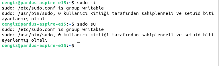Root yetkisi almak için terminalden kod giriyorum ama hata veriyor.