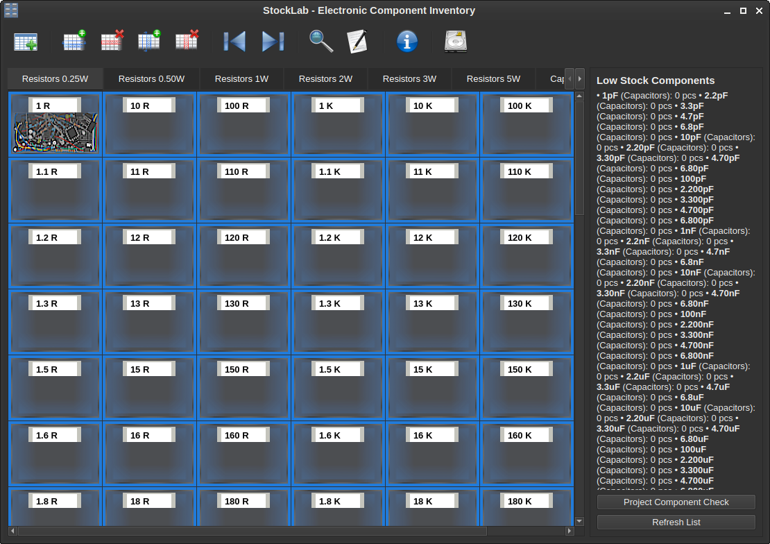 Bu program, küçük elektronik laboratuvarlarındaki komponentlerin sayısını takip etmenizi, eksik ya da hiç olmayan parçaların sipariş listesini oluşturmanızı sağlayan, hafif bir envanter yazılımıdır. Python dili ile yazılmıştır ve PyQt6 üzerinde çalışır. Bir projeye başlamadan önce, stok durumunuzu öğrenmenizi sağlayarak, önceden kötü süprizlerle karşılaşmanızı önler.