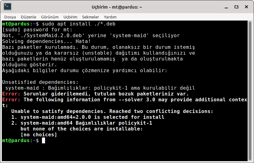 Eğer kurmaya çalıştığınız yazılım doğrudan eski isme (policykit-1) bakacak şekilde kodlanmışsa, sisteminizde teknik olarak aynı işi yapan yazılım olsa bile bu hatayı verecektir!