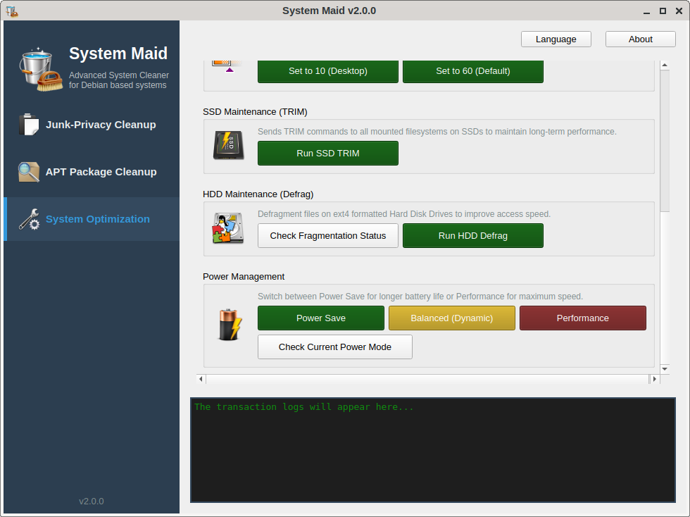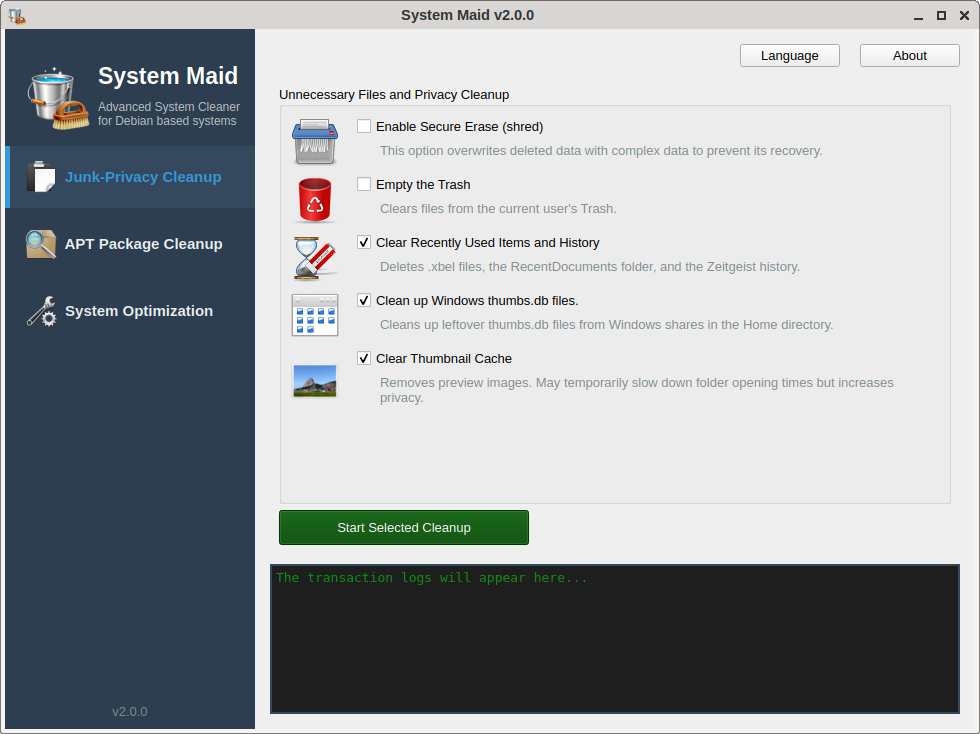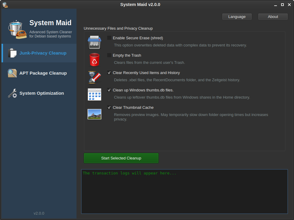 System Maid, CCleaner ya da WiseCleaner’ın linux alternatifidir ve bleachbit’ten nispeten daha iyidir. Bleachbit, bilinçsiz kullanımlarda geri alınamaz hatalara ve veri kayıplarına neden oluyordu. Ayrıca geliştirilmesi hala “olgun” sürüme geçememişti.