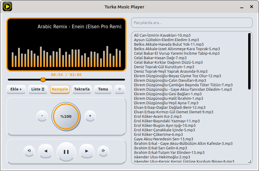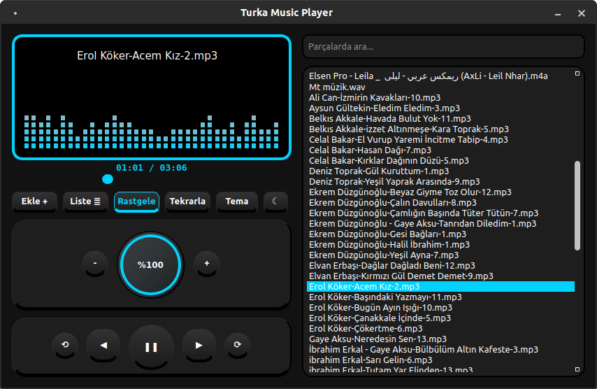 Debian/Pardus 25 için yepyeni Müzik çalar uygulama projem.