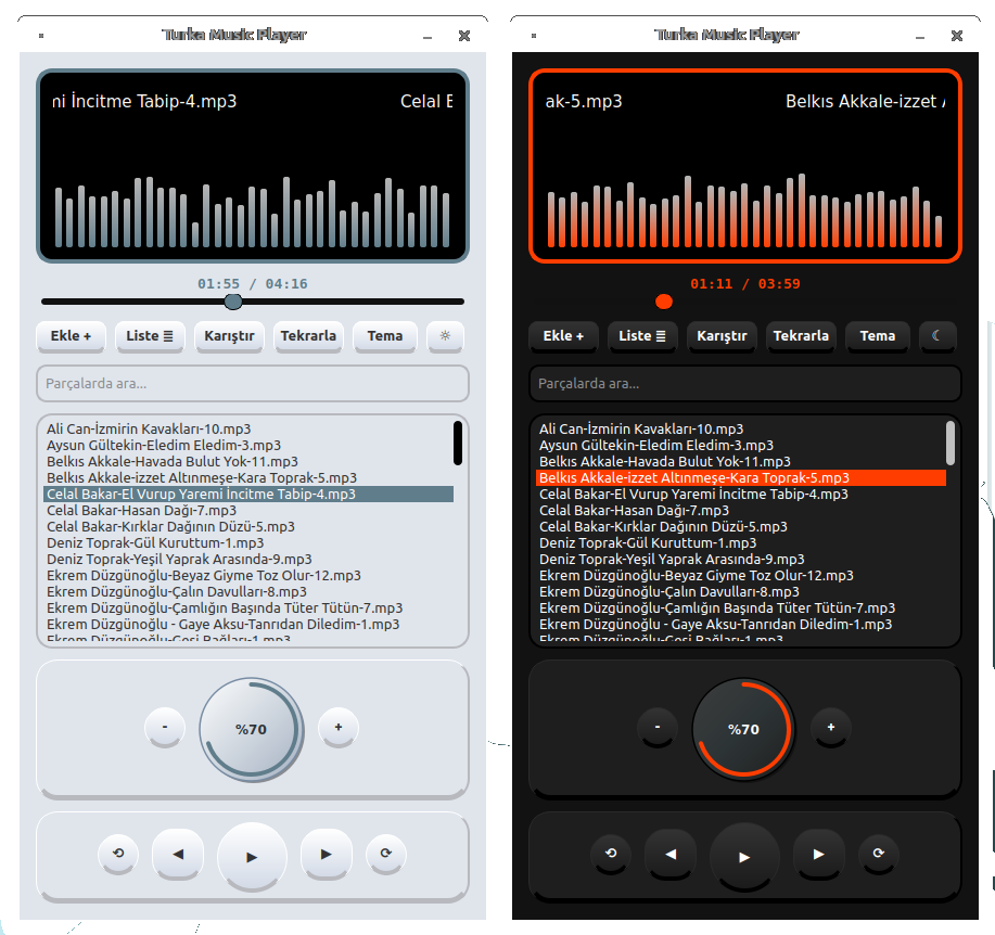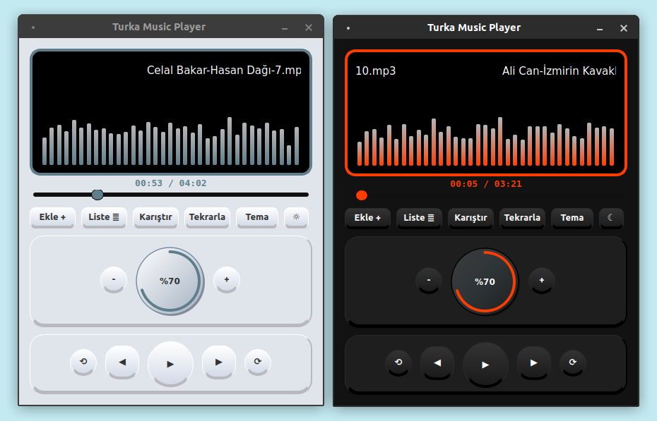 Popüler ses formatları destekleyen, koyu ve açık modlu, 20 tema fonksiyonlu, kullanımı basit ve modern bir uygulamadır.