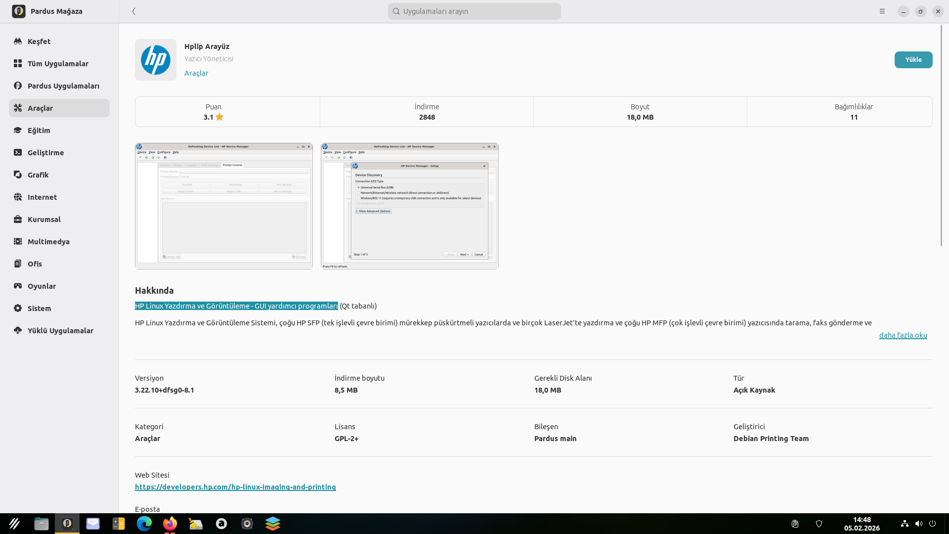 Yazılım mağazasından HP Linux Yazdırma ve Görüntüleme - GUI yardımcı programını yükleyip kurmayı deneyin. Programı kurduktan sonra program üzerinden kurabiliyorsunuz.