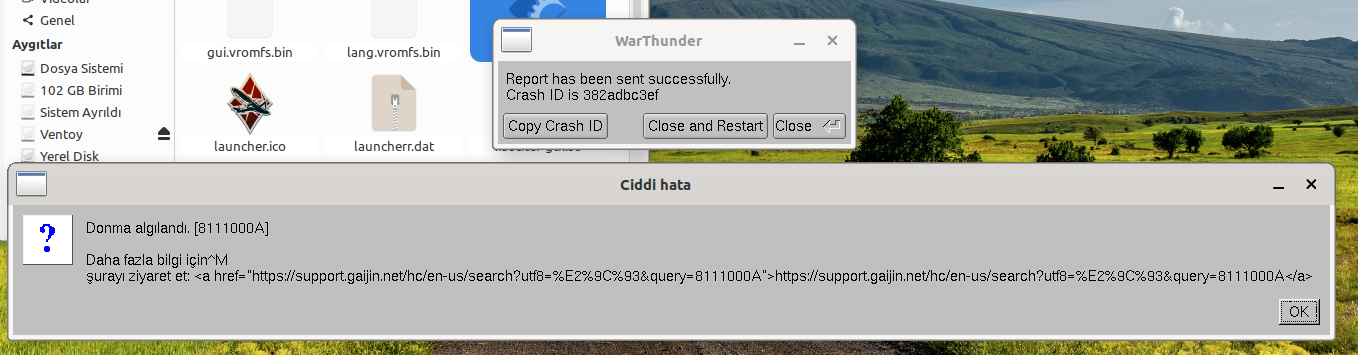 bu gelen hata pardus 25 de geliyordu. pardus 23.2 ye geçtim şuanda hata gitti. performans modunda ama hala donma yapıyor. şöyle bir hata verip kapanıyor.