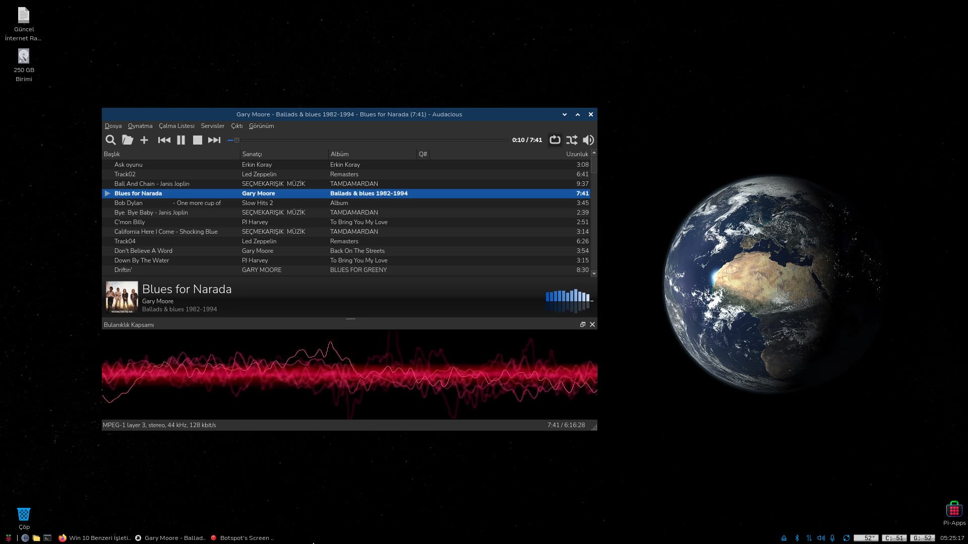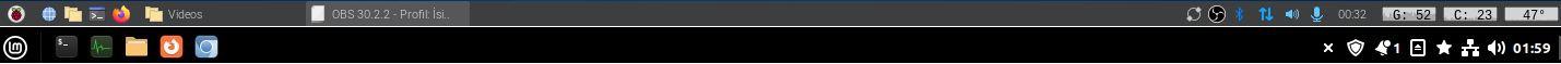 Aşağıdaki fotoğrafta Raspberry Pi OS paneli gri, ama sonra onu da siyah olarak kullanmaya başlamıştım. Siyah iken aşağıdaki fotoğraftakinden çok daha hârika görünüyor. Kesinlikle LMDE 7 “Gigi”'den ve hatta Pardus 25 Gnome ve XFCE’den bile daha modern göründüğünü söyleyebilirim!